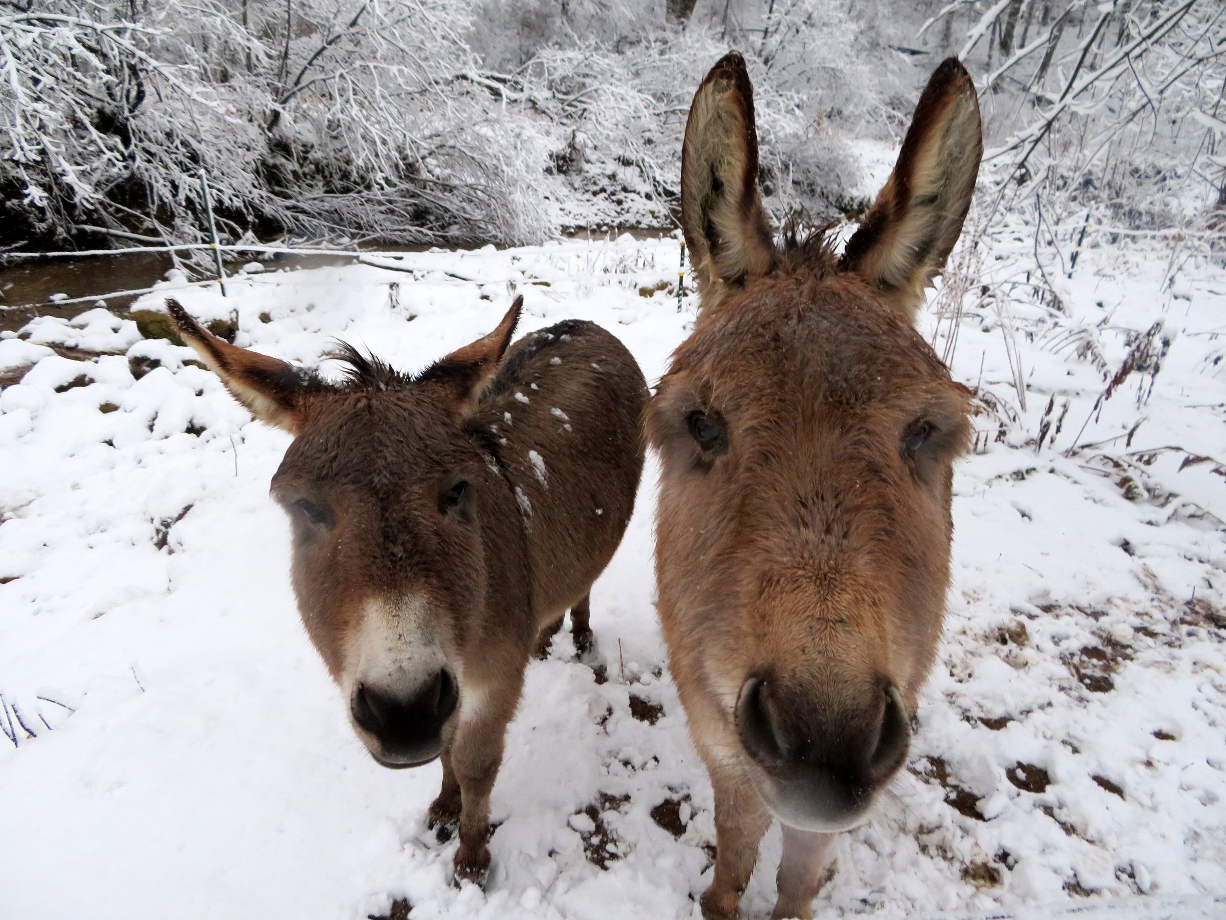 Both donkeys were too chunky. Frank said they could live off the scrub in the pasture, and he told me to stop giving them grain and sweet treats. An occasional apple or a carrot wouldn’t hurt them, he explained, but the rich hay and treats would.