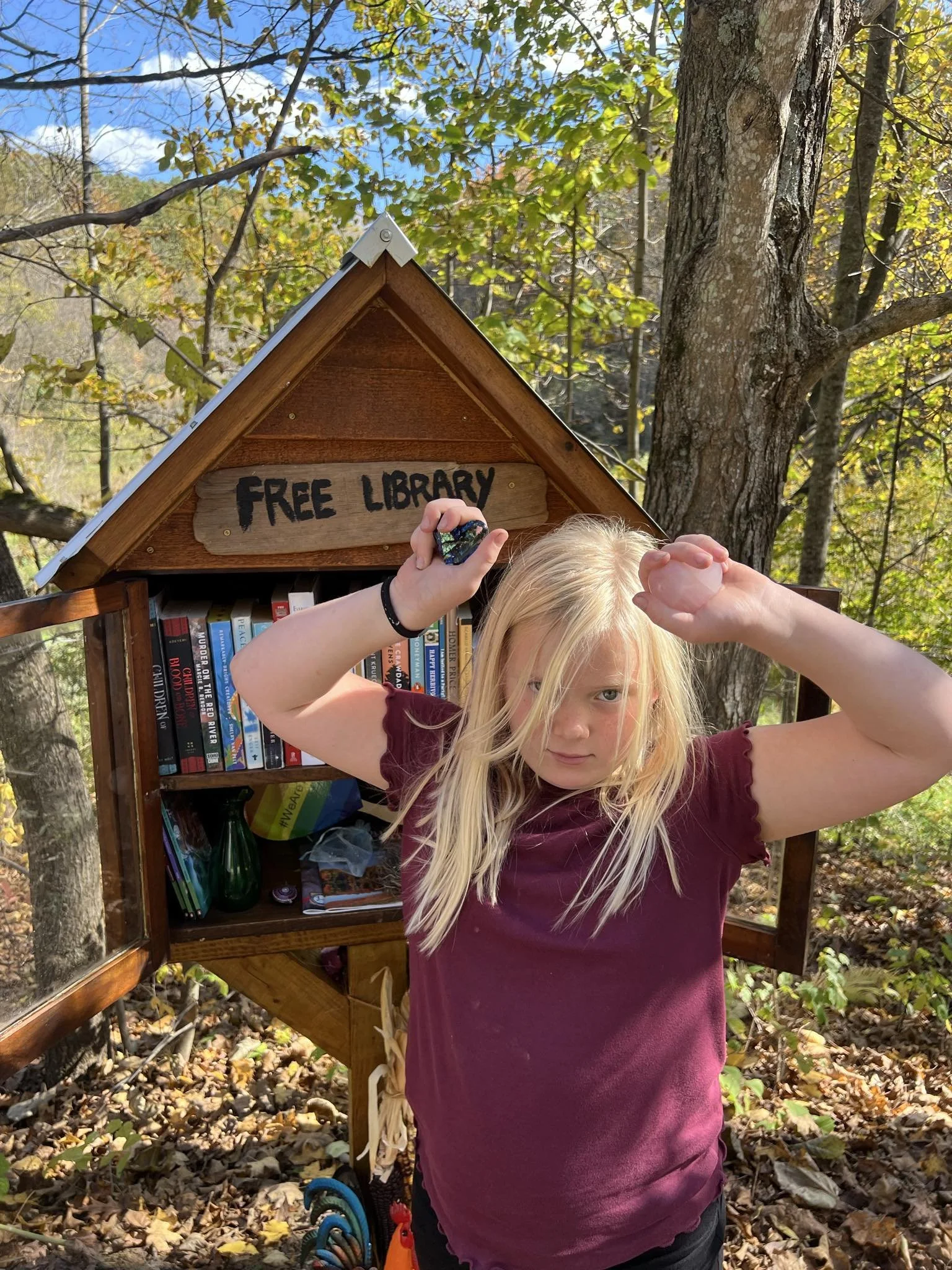 We’ve also added treasures for the adults and kids who stop by: a bird nest, feathers, heart-shaped rocks, small vases, and even earrings. Last week, Meaghan told me Margo found a treasure to give her friend who’s been sick. Oh, that does our hearts good!